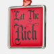 Feeling the anti-capitalistic feels this holiday season? Add some rebellious flair to your holiday décor with this square metal Christmas ornament, featuring the bold phrase "Eat The Rich" in a fancy black font against a festive red background. Perfect for the anti-capitalist, anti-wealth, or anti-corporate person, this ornament mixes humour with sharp political satire. It's a funny and unique holiday decoration that brings a provocative twist to the season. Whether for your own tree or as a Christmas gift for the right person, this ornament is sure to spark conversation and spread a little holiday humour!