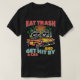 two raccoons driving a car, sun glasses on, vintage sun behind.