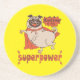 Eating is my superpower red cloak pug comic style coaster