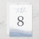 Elegant coastal table numbers for your wedding or special event feature a sheer dusty blue watercolor gradient along the bottom with a graceful curve that evokes the ebb and flow of the sea.