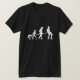 Black basic american apparel t-shirt with an abstract illustration about human evolution on the front and the "EBM Logo_5" as well as the text "Stomp by Stomp” on the back.