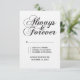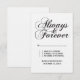 Trendy and unique Always and Forever Wedding Response Card featuring a beautiful handwritten typography text design in black and white. This simple and elegant RSVP card sets the tone for a classy and romantic wedding and is easy to customise with your wedding details. Click "Customise It" to find more personalisation options. Background colour can be changed to any colour you would like.