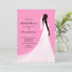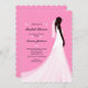 A beautiful pink invitation with an ebony bride wearing a flowing long wedding gown. The background has little pink hearts and floral embellishments. ( <a href='http://www.freepik.com/free-vector/pink-bridal-shower-invitation-with-female-silhouette-and-wedding-dress_1078496.htm'>Designed by Freepik</a>). <br/><br/>The card is easy to customise with your wording, font, font colour, paper shape options and choice of six paper types.<br/><br/>Not exactly what you're looking for? All our products can be custom designed to meet your needs at no extra charge.<br/><br/>Simply contact us at askcottonlamb@gmail.com<br/><br/>Coordinating products available: Just ask us!
