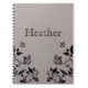 Sweet and dainty Butterfly Floral Notebook with a muted dusty grey background and ebony butterflies and floral vine embellishments. This elegant floral notebook is full of girly flair and is perfect for jotting down notes or whatever else your imagination holds! Easy to customise, simply add the personalised text of your choosing in the text fields provided. Click on the "Customise It" button to find additional personalisation options.