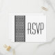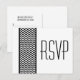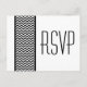 Chic and modern Chevron Border Wedding Response Postcard featuring a simple chevron pattern border in black and white. This stylish design will set the tone for an elegant wedding. Easy to customise, simply add your wedding details in the text fields provided. Click "Customise It" to find more personalisation options.