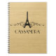 Elegant and chic French Flourish Notebook featuring a faux woodgrain look background and an Eiffel Tower design in black adorned with cascades of stylish swirls. This girly and trendy design is easy to customise with the personalised text of your choosing. Click "Customise It" to find more personalisation options.