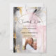 Send out your Save the Date requests- Modern text and calligraphy fits nicely inside this beautiful sheer white gold edged arch frame that shows the underlying fantasy bright fuschia scarlet peony flowers also edged in gold - original artwork © by WhimsicalArtwork™.
