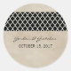 Elegant and sophisticated Rustic Quatrefoil Wedding Stickers featuring a vintage textured look background and a modern pattern border in black and white. Easy to customise, simply add your wedding details. Click "Customise It" to find more personalisation options.