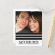 Simple and modern Triple Stripe Photo Save the Date Postcard featuring a chic striped border in ebony and a photo template. This classy save the date postcard is perfect for announcing your wedding! Easy to customise, add your wedding details and replace the photo with one of your own. Click "Customise It" to find more personalisation options.