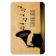 Quirky and unique Vintage Gramophone Premium Flexi Magnet in black featuring a silhouette of an old-fashioned gramophone and a cascade of musical notes on a digital art rendered paper background. This chic magnet will add a vintage flair to any magnetic surface and is perfect for any music lover. Easy to customise, simply personalise with the text of your choosing. Click on the "Customise It" button to find additional personalisation options.