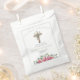 An elegant memorial seed favour bag featuring beautiful sage green eucalyptus on a wooden cross. Personalise it with your loved one’s name, date, and the type of plant. The delicate botanical design of roses and eucalyptus on a simple white background creates a timeless and heartfelt keepsake. A beautiful way to thank guests and share a living memory from the memorial service.