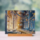 The warm, golden light emanating from the central clock contrasts beautifully with the cool, deep blues of the surrounding water and sky, hinting at both dawn and dusk, past and future. This piece is a perfect blend of intricate detail, fantastical architecture, and a sense of nostalgic awe, making it ideal for those who appreciate art that stimulates the imagination and celebrates the beauty of instrumental music's narrative power.