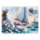 A tranquil watercolor moment that follows the whispers of the sea into evening light. A woman in soft blue sits near the shore as a sailboat glides past weathered boulders, reflecting the last golden hues of day. Gentle motion and stillness intertwine, telling a story of longing, peace, and renewal beneath the open sky. Created in Bluemora Haven’s delicate coastal palette, this piece harmonizes beautifully with Whispers of the Sea at Sunset as part of a serene, storybook pair. AI generated artwork.