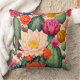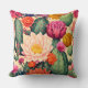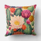 This decorative pillow showcases a stunning desert garden scene with blooming cacti in shades of pink, coral, and orange. Large, detailed blossoms contrast beautifully with green cactus pads and golden accents on a warm cream background. Perfect for adding a vibrant southwestern or botanical touch, this pillow brings bold colour and artistic charm to living rooms, patios, or bedrooms.