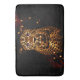 Eclipse Majesty, showcase a leopard with glowing golden fur and distinctive spots, set against a dark background. The leopard's eyes are illuminated in bright purple, creating a striking and mystical effect. The dark surroundings are accented by scattered, warm lights, giving the scene a dramatic almost otherworldly atmosphere.