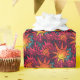 Dive into a vibrant tapestry of swirling suns and radiant shapes. This artwork blends fiery oranges, deep magentas, and cool teal accents in a bold, handcrafted pattern. Textured strokes and energetic linework create a sense of movement—like celestial gears turning behind a burning sky.