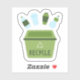 Promote recycling with this eco-friendly sticker featuring a green recycling bin adorned with the universal recycling symbol. The bold “RECYCLE” message and floating recyclable items like plastic bottles emphasize the importance of sustainable practices. The sticker is bright, colourful, and ideal for decorating laptops, water bottles, notebooks, and more, this sticker is a great way to show your commitment to protecting the environment.