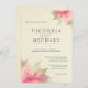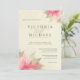 Abstract pink flowers on simulated ecru parchment background with wispy leaves and whimsical swirls border this beautiful wedding invitation set. Perfect for indoor and outdoor garden weddings in any season -- spring, summer, autumn, fall, and winter. Elegant semi-formal vintage typography text is sure to please the traditional bride, but a splash of sophisticated styling makes it trendy enough for modern brides. Simple but stylish elegance at bargain discounts and affordable prices for frugal brides on a budget. Shown on eco-friendly Recycled paper stock -- easily changed to less expensive Basic card stock, or upgrade to premium quality felt, linen, and metallic paper options. Customise it to change the font colours and styles. Complete bridal kits and wedding packets available on request. Please contact us if you would like this design modified to match your bridal party colour theme. This easy to use template can also be personalised for any special occasion such as engagement and marriage announcements, anniversary party invitations, womens feminine birthday party invitations, corporate and business events, charity fundraisers. Please contact us for assistance if you need help to create your own unique one-of-a-kind invitations. CARD SIZE: 5 x 7 inches -- other sizes, colours, and paper styles available.