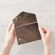 Once folded, this invitation becomes its own matching envelope, featuring soft gold lighting effects, floral line art, return address, and stamp placement. Perfect for rustic, barn, fall, woodland, woodgrain, boho, and cozy evening weddings.