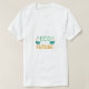 The t-shirt features a message of environmental optimism in a vibrant, multi-coloured design. "Eco" bursts with shades of green and blue, symbolising nature and sustainability. "Is" transitions smoothly through calming blues and purples. "The Future" takes centre stage in a bold, confident font with a spectrum of bright colours, creating a dynamic and eye-catching statement that promotes a hopeful vision for a sustainable future.