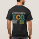 This t-shirt design promotes environmental consciousness over self-centeredness with the phrase "Eco, Not Ego" displayed prominently across the front. The text utilises a vibrant multicolor scheme, with "Eco" in various shades of green and blue, representing the natural world, and "Ego" in a contrasting colour like gold or silver, symbolising a shift away from self-importance.