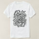 A T-shirt with an attractive original hand drawn abstract surreal design made up of various circular and square shapes connected with various pipe or tube like structures. Sure to be a conversation piece and capture the imagination like a diagram for some kind of strange machine to control the weather, travel through time or talk to aliens from other worlds.