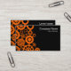 A business card template with an original abstract network motif on the left. Company name and business type on the front with Name, address telephony, email and web details on the back.
