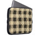 Image printed on electronics bag is from a photo of an original tapestry crochet creation designed handmade and Copyright © by published designer Delores Chamblin. The textured stitches of the unique handcrafted black and beige shades gingham plaid textile pattern is reproduced on the travel case.