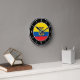 Ecuador Flag Elegant Round Clock with the Ecuador flag positioned in the middle and lovely white clock numbers on the clock edge. Delightful black background with the white oval elements finalize the design putting emphasis on the elegance. Beautiful combination of black and white with the skillful integration of the national flag colors make this clock the perfect gift and the great show piece on the wall. © CountriesOfTheWorld