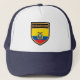 The national flag of Ecuador is infused into a faux gold shield shape with the country name added above the flag.