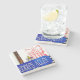 The coasters are gorgeous, a quality feel and heavy weight. They look like a precious archeological find. A rustic stone juxtaposed with a modern floral black and white print. I like the way the print goes slightly imperfect on the cut stone edges giving them a kind-of natural beauty.