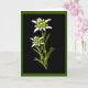 Pretty graphic artwork of the Alpine flower called Edelweiss. Set against a jet black background, with a green edge around the card, you can almost feel the fuzzy softness of the flowers petals. Text inside is fully customisable to suit your needs. Great for every day notes to special occasion cards.
