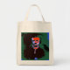 The printing came out very well, better than I had anticipated. The natural color fabric is sturdy with strong seams and comfortable handles. This tote fits easily over my shoulder. As it is filled, the bottom flattens out--very cool! I would buy this product again. This grocery tote holds a lot of groceries! The image quality was very good. The colors were a little darker than I had expected. The darkness may have been due to printing on a natural color fabric rather than on white. The cat design is attractively centered on the tote. The spirit of the design is very lively, just as it appears on the Zazzle website.