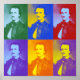 Pop Art style design with multicolored images of Edgar Allan Poe.