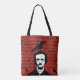 Edgar Allan Poe with Black Raven on Red Tote Bag