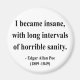 "I became insane, with long intervals of horrible sanity." - Edgar Allan Poe