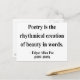 "Poetry is the rhythmical creation of beauty in words." - Edgar Allan Poe