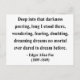"Deep into that darkness peering, long I stood there, wondering, fearing, doubting, dreaming dreams no mortal ever dared to dream before." - Edgar Allan Poe