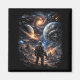 A lone astronaut stands on an alien world beneath swirling galaxies and distant starships, ready to face an epic cosmic conflict.