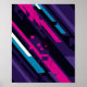 This design features sharp diagonal lines combined with geometric elements, creating a futuristic and edgy aesthetic. The vibrant pink, blue, purple, and white colours stand out against a dark background, giving the design a sense of energy and movement. The distressed texture and abstract shapes add a dynamic, modern feel, making it ideal for streetwear, tech accessories, and contemporary artwork.