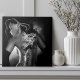 Moody and dramatic, this black and white design highlights contrast, shadow, and raw artistic detail. Featuring a woman turned away to reveal an intricate dragon tattoo flowing across her back coming to life, this grayscale painting emphasizes linework, texture, and bold composition. The monochrome palette creates a timeless, edgy aesthetic perfect for lovers of tattoo culture, gothic art, and dramatic portrait designs. A striking piece for modern spaces or anyone drawn to dark, high-contrast artwork.