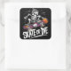 Edgy Halloween Skeleton Riding Skateboard: Monochr Square Sticker