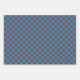 This wrapping paper sheets design showcases a traditional tartan pattern featuring a rich palette of deep navy blue, vibrant crimson red, and accents of regal purple. The classic plaid arrangement offers a sophisticated and timeless aesthetic, perfect for elevated gift presentation. Precisely intersecting lines create a sense of heritage and order, making it an ideal choice for formal occasions, winter holidays, or celebrating Scottish ancestry. The geometric symmetry and bold colours provide a distinguished look for any gift-giving moment.