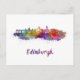 Edinburgh skyline in watercolor splatters with clipping path