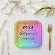 Edit YEAR, Cheers Gradient Rainbow 7-in Square Paper Plate