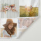 Modern minimal multi photo script birthday fleece blanket gift. edit the age to suit your occaison, Ideal gift available for mums, dads, grand, grandad of any family member. Stunning elegant script text. Black, white and gold design.