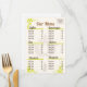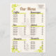 Flat Menu Card, Size: 10.2 cm x 22.9 cm, Paper: Basic Semi-Gloss