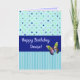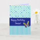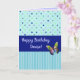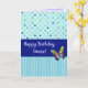 This editable card has polka dots on an aqua background on the top and blue stripes on the bottom with a band of striping near the centre. There are birthday wishes and a butterfly. The band of striping can be changed to any colour and so can the font on the front and on the inside. The text on the front and inside are editable too so change the messages and the name and make it your own! This can be used for almost any purpose: birthdays, thank-you cards, anniversaries, graduations, retirements etc.