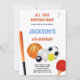 Celebrate your MVP with this action-packed All-Star Sports Birthday Invitation! Featuring a dynamic mix of sports like football, basketball, and soccer, this editable invite is perfect for a fun-filled birthday bash for boys who love staying active and competitive.
