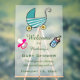 This beautiful, editable sign features a baby carriage at the the top with the details of the event below. There are illustrations of a baby bottle and a pacifier, as well. The text is editable so go ahead and change the details as well as the font style, size and colour. This can be used for a baby shower, baby's birthday etc.